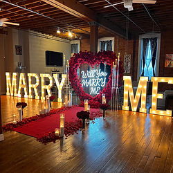 Full Set up Packages: Daisy : Rose Heart + Sign $345 (Medium Sign) $365 (Large Sign) Lily Package: $595 Big Flower Heart Big Will You Marry Me LED Light Red Carpet Faux Rose Petals (Real Petals $120) Faux Roses (100 Real Roses $200) in Vases Candles in Vases Candelabras Pedestals/Stands Set up/Clean up Rose Package $750 Will You Marry Me Marquee Letters (4ft) Big Rose Heart or Flower Heart (Red or White) Big Will You Marry Me LED Light Faux Rose Petals Red Carpet Faux Roses in Vases Candles in Vases 2 Pedestals/Stands 2-4 Candelabras Set up/Clean up The time you select will be the time you'd like to Propose After booking, a member of our team will contact you to discuss additional details (Please leave Name, Number and Email) A Non Refundable Retainer fee of 50% is required to book. The Remaining Balance is due 7 days before your Event. Rental : Up to 2 hours after the Proposal time Please note that a Non Refundable retainer fee is required to secure your reservation